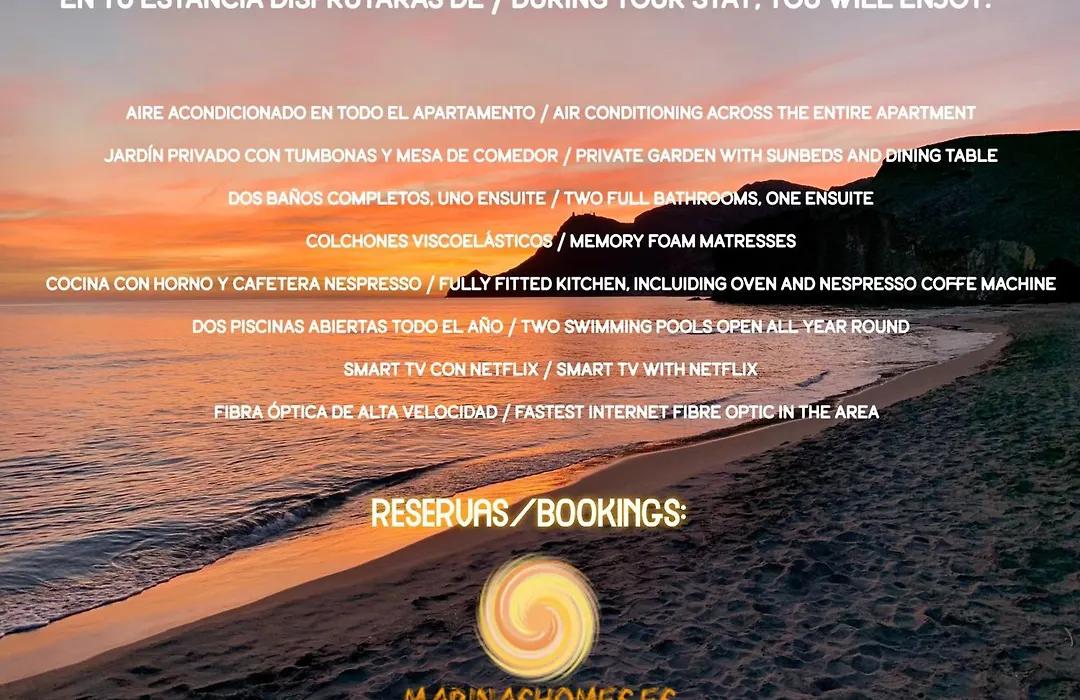 El Eonia Marinas-Dúplex con porche en primera línea! Vera ofrece una piscina y se encuentra a 1 km de la Plaza de Toros de Vera. Situado a unos 10 minutos en coche del Parque Acuático Aquavera, este apartamento frente a la playa de 70 m² tiene vistas al jardín.